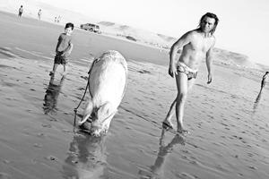 Así se pasea el Tarzán ariqueño con su peculiar mascota en Las Machas