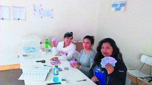 Vocales de mesa jugaron cartas y le hicieron un letrero de feliz día a los papás