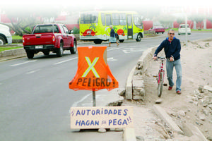 Con chaleco y recado alertan a conductores