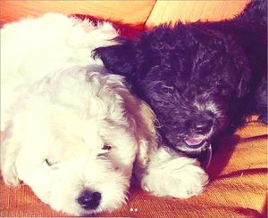 La "malvada" Elsa y Maratón "Los adopté hace algunas semanas y son unas bestias: se llaman Elsa y Maratón. Elsa sabemos por qué: es la más mala de todas, jajaja", cuenta Pablo Illanes, so puso a una de sus mascotas el nombre del personaje central de "Perdona nuestros pecados". El guionista de la teleserie dice que hace un tiempo que no tenía animales domésticos. "Hace rato que no tenía, porque se me murió un perro hace cinco años atrás y fue súper triste. Pero ahora sí se dio". Illanes explica que un amigo les regaló los perritos porque no podía quedarse con ellos: "Son hermanos. Semi-poodle. Eran tres en la camada y me quería llevar sólo a uno, pero al final me dio pena porque los íbamos a tener que separar y ha sido súper bueno porque se entretienen juntos y se comen los libretos de la teleserie".
