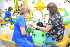 Dinosaurio llegó desde China para acercar a niños al dentista