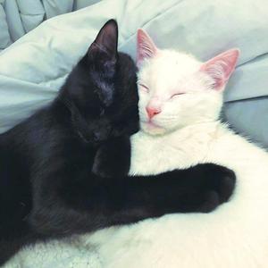 Toto y Puma, el Yin y el Yang Edad: 6 meses "Tengo dos gatitos: uno blanco y otro negro. Uno se llama Toto y el otro es Puma. Son el Yin y el Yang. No son hermanos, los adopté por separado, pero de casualidad nacieron con una semana de diferencia", explica el actor Raimundo Alcalde. El integrante de la teleserie "Amar a morir" entrega un consejo: "Le recomiendo a la gente que tengan dos gatos, porque si tienen sólo uno lo van a pasar mal. Te va a rasguñar, morder y se vuelve loco. Lo sé porque tuve uno durante tres meses, hasta que adopté al otro. Trabajé para que se llevarán bien, es todo un proceso". El actor destaca la independencia de los felinos. "Siempre me han gustado más los perros, pero vivo en un departamento y estoy con mucho trabajo; los perros requieren más tiempo. Los gatos son más independientes".