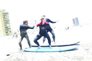 Pasados los 50 decidieron aprender surf en Arica
