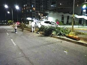 Vehículo perdió el control y derribó dos palmeras