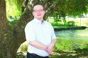 Libro traducido por el astrónomo Dominik Schleicher mirando el cielo