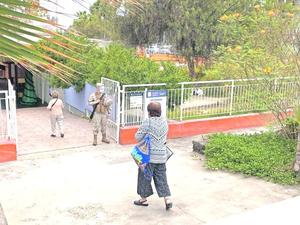 A metros de local de votación
