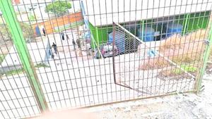 Auto cayó a patio de empresa tras colisión múltiple