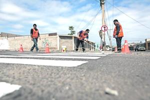 Pintan señales de tránsito en escuelas